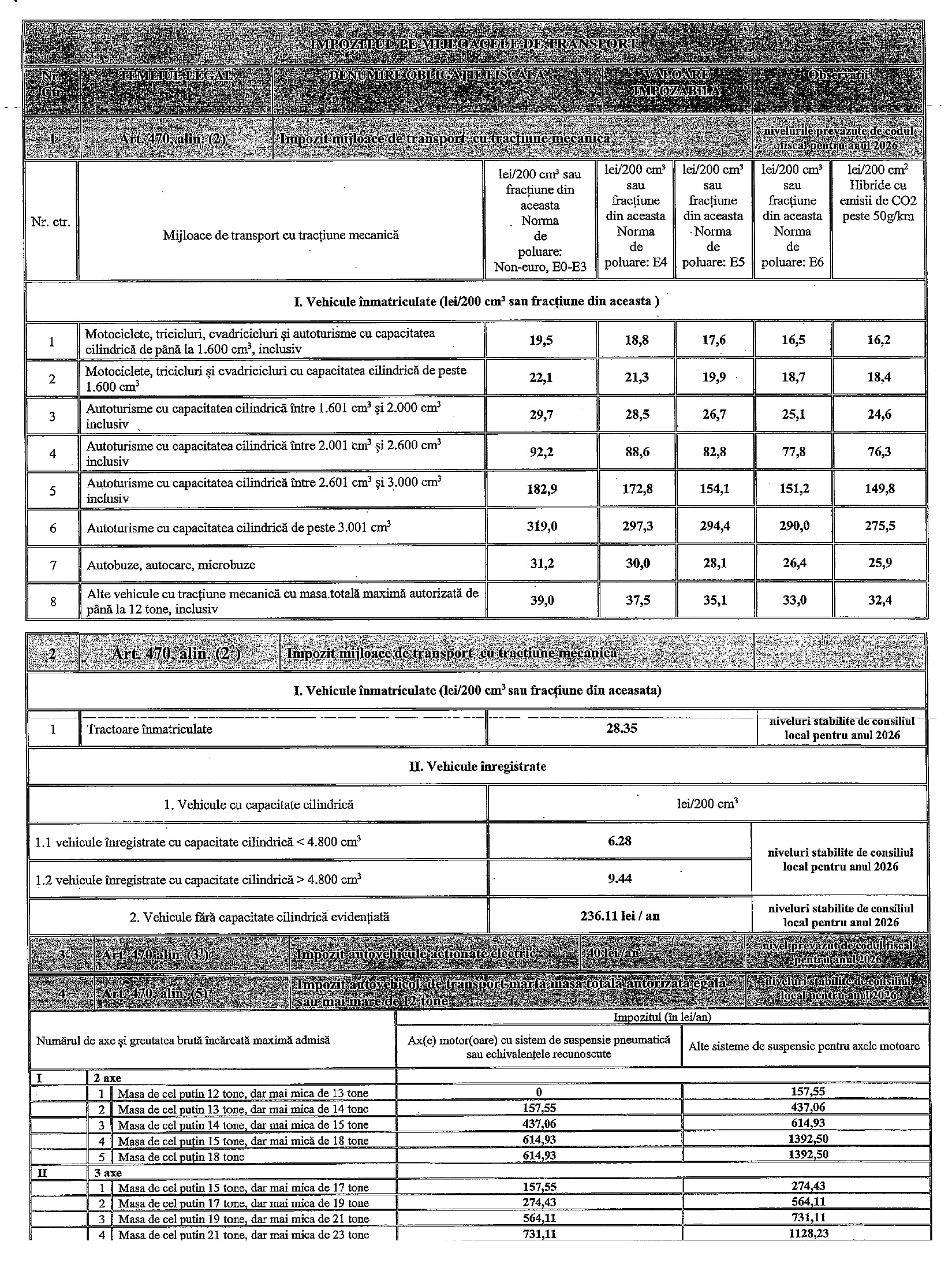 7. Creste impozitul si se modifica modul de calculare a impozitului pe mijloacele de transport cu tractiune mecanica (impozitul se calculeaza in functie de capacitatea cilindrica, dar si de norma de poluare) – aceste prevederi sunt in art 470 care se va modifica)