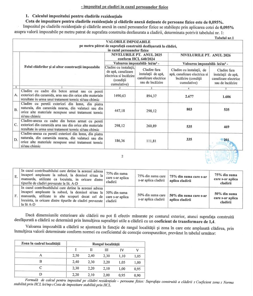 - 0.095% pentru cladirile rezidentiale si cladirile-anexa;